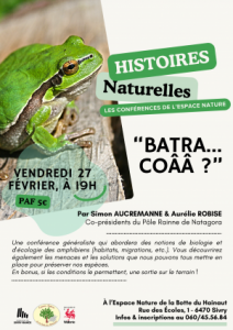 Le 27/02/2026 - Une conférence généraliste qui abordera des notions de biologie et d’écologie des amphibiens (habita...